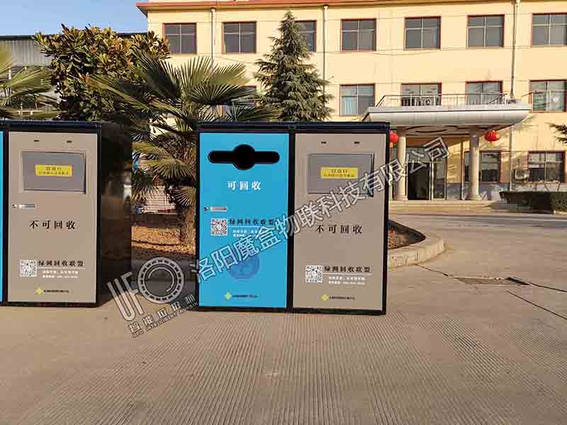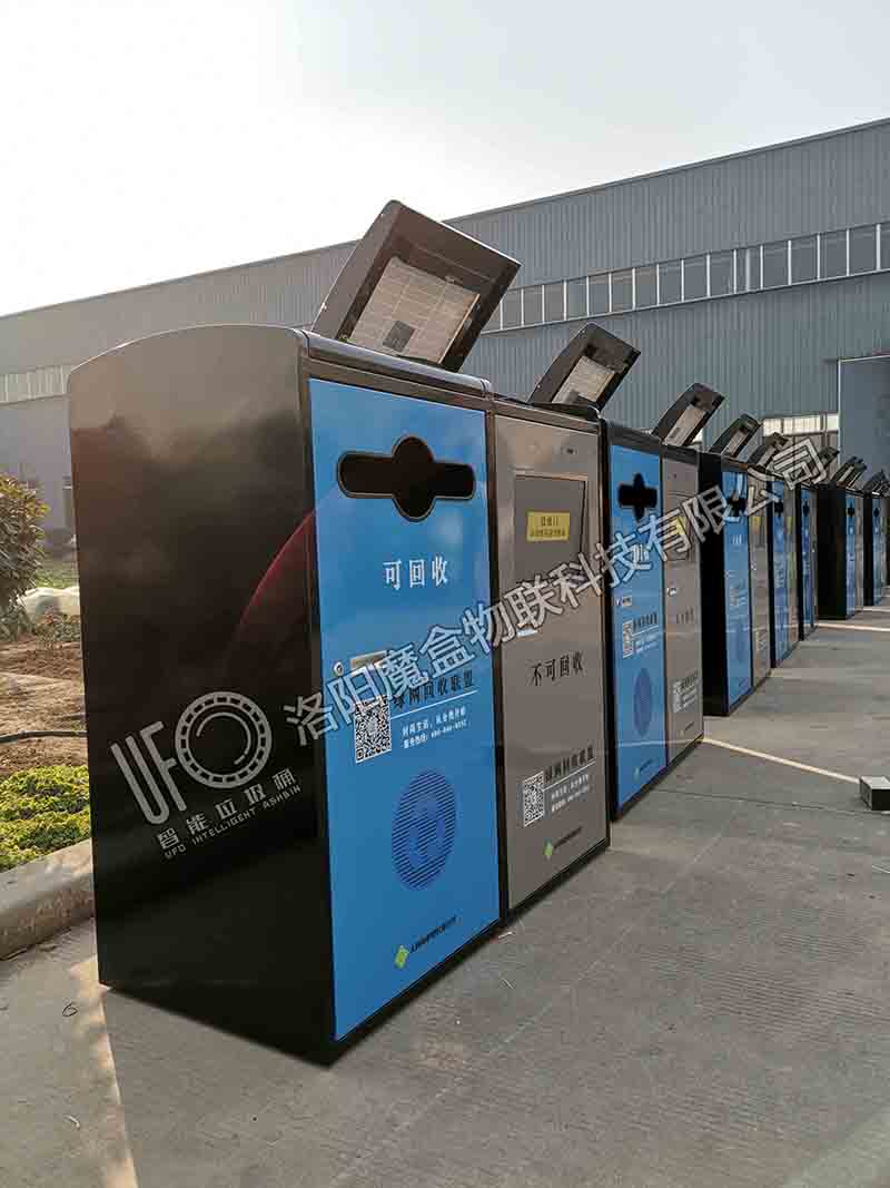 蓝天的蓝,大地的灰,这一对灰蓝款智能垃圾桶组合放在马路边亮眼炫目。