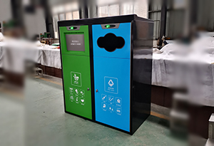 垃圾箱通过不同投放口进行垃圾分类引导,内部设有压缩系统,用箱顶的太阳能电池板供电,可自动对投入的垃圾进行压缩。